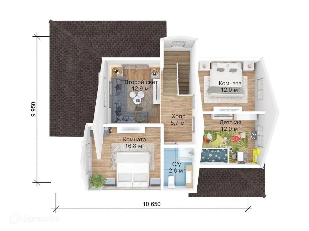Высота потолков — от 3 м! Представьте: вы заходите в гостиную, а над вами — настоящий «небосвод». Такое пространство дарит ощущение свободы, а ещё отлично «держит» свежий воздух. Летом — прохлада, зимой — уют. - Три спальни — три повода для радости
