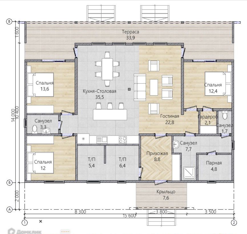 В доме комфортно разместятся:- семья из 4–5 человек;
