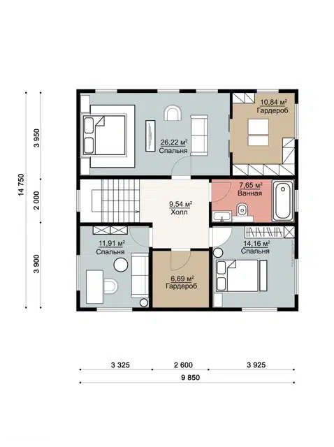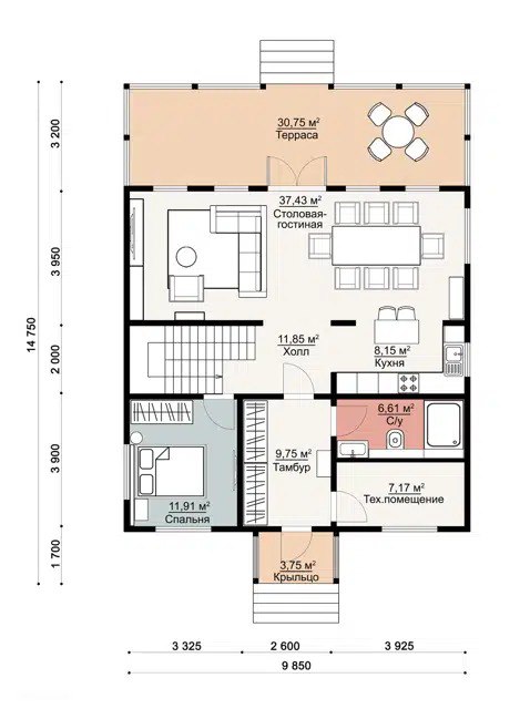 - 145 м² застройки — дом не «расползётся» по участку, но при этом вместит всё, что душе угодно.