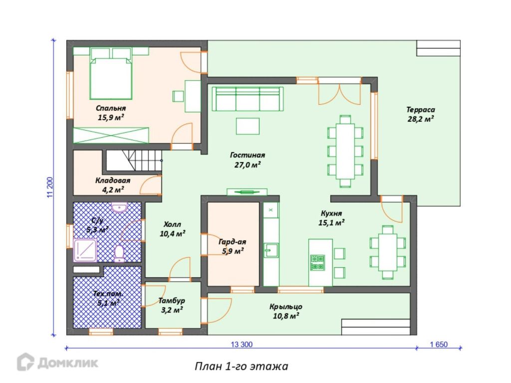 Площадь застройки – 166 м²
