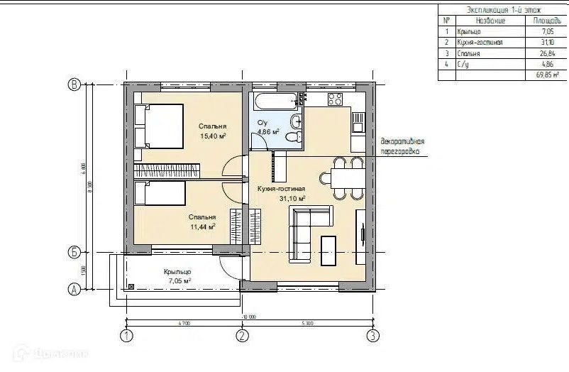 - 70 м² общей площади — ровно столько, чтобы не заблудиться, но и не чувствовать себя в коробке. Идеальный баланс между «мне нужно место» и «я не хочу убирать гектары».