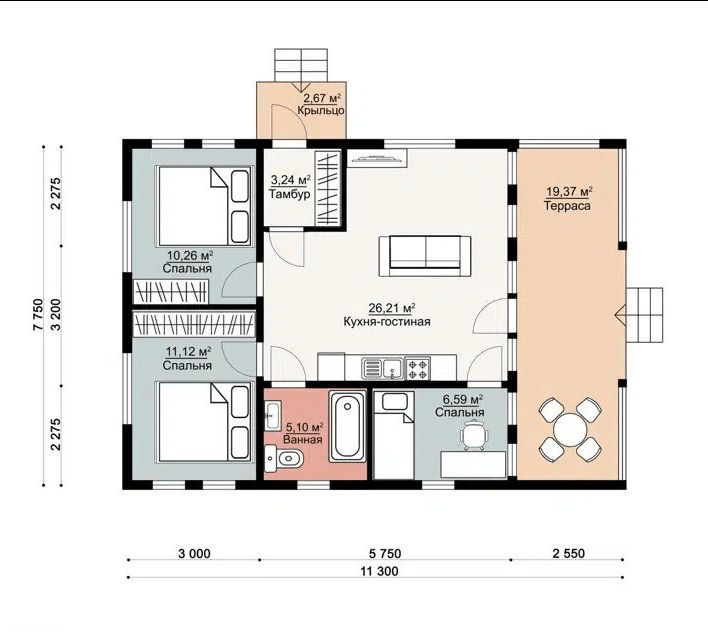Представьте дом, в котором всё продумано так же ловко, как у любимого динозаврика из детства. Да‑да, мы говорим о проекте «Барни» — уютном одноэтажном домике, где хватит места и для сладких снов, и для весёлых посиделок!