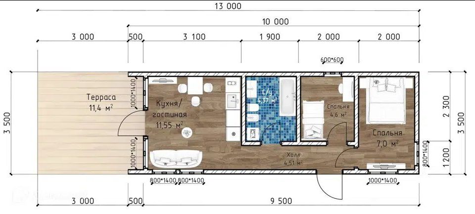 - 1 этаж — никаких лестниц, никаких «ой, я забыл, что наверху»! Всё на одном уровне — удобно, как в детстве, когда можно бегать босиком по всему дому.