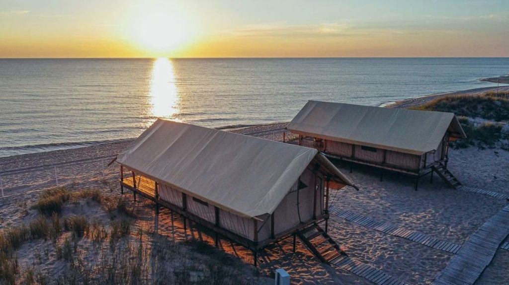 На территории располагаются 18 видовых Тент-Хаусов с личной террасой со всеми условиями комфортного пребывания (включая душ, туалет, мини-холодильник). Они работают с мая по октябрь. А четыре домика и бунгало доступно к бронированию круглогодично. Здесь есть SPA-зона с чаном и шезлонгами и большой открытый бассейн, который функционирует с мая до конца сентября. Но самый главное здесь конечно же – берег Балтийского моря с с его широкими пляжем и дюнами.