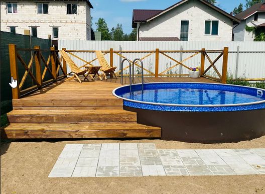 - Развлечения для детей: летом — каркасный бассейн, круглый год — детский батут.