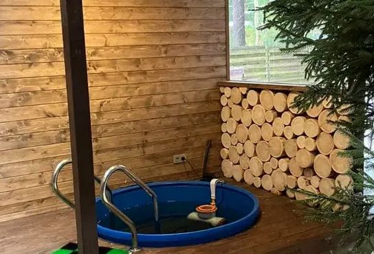 - Холодная купель на террасе — для любителей контрастных процедур и заряда бодрости.