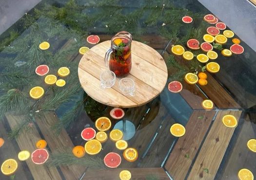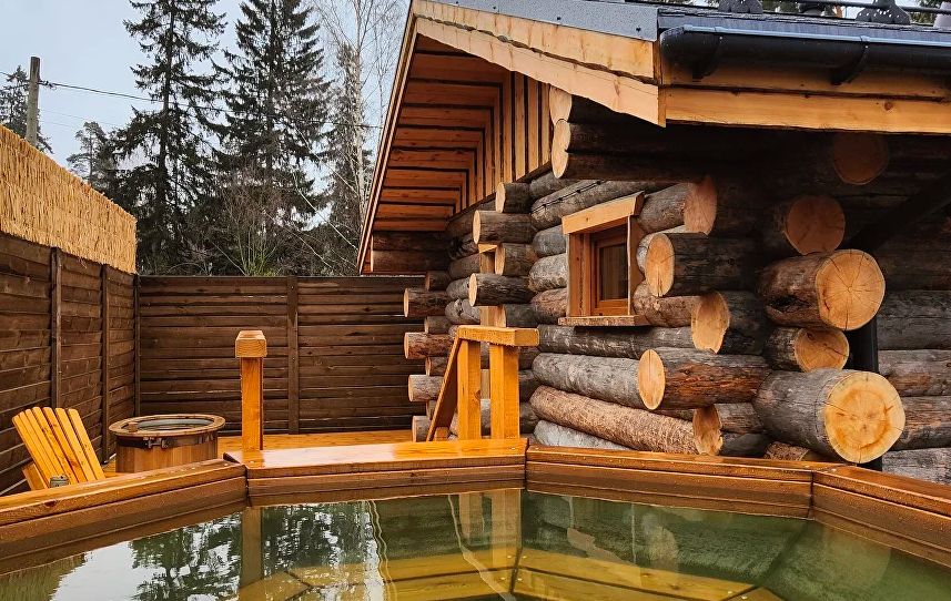 - Горячий чан под соснами — ритуал расслабления на свежем воздухе: зимой он дарит согревающее тепло, а летом помогает снять усталость.