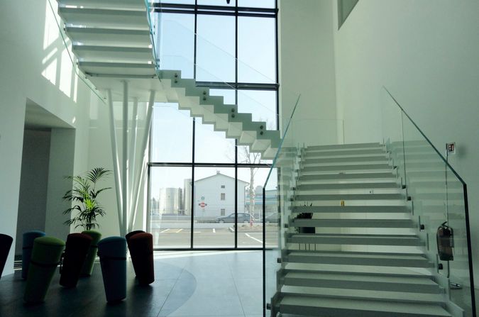 Ступени закреплены только с одной стороны, создавая эффект «парения».