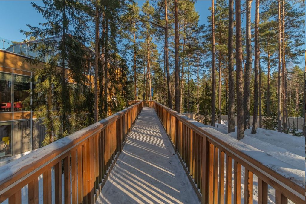 Отличное место для отдыха с семьей. Большая ухоженная территория с интересным ландшафтом и перепадом высот. Первая береговая линия, много прогулочных экомаршрутов. Остановиться можно в отеле с панорамным окнами, выходящими на заповедный лес, и в коттеджах с уютными террасами. Гостям предлагаются активные развлечения: конные прогулки, велопрогулки, лыжи, квадроциклы, футбол, баскетбол и волейбол. Для более спокойного отдыха есть баня и сауна. Также можно заняться рыбалкой, приготовить барбекю, посетить киноклуб и мастер-классы по живописи. Для детей – детские площадки и автопарк, библиотекой, Lego – комната, няня.