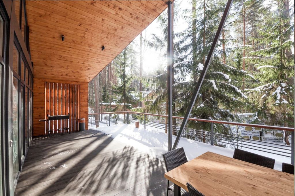 Характерные черты этого современного стиля – экологичные материалы (деревянная отделка снаружи и внутри), минималистские интерьеры, панорамные окна и большие террасы.