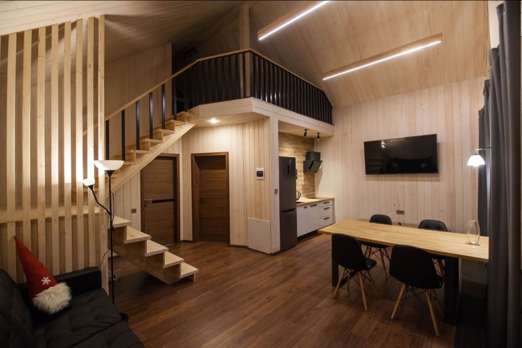 В каждом коттедже есть отлично оборудованная кухня (плюс мангал на улице), система smart-TV и устойчивый wi-fi