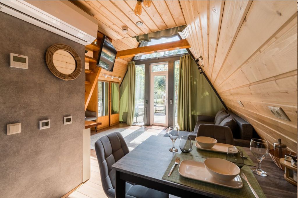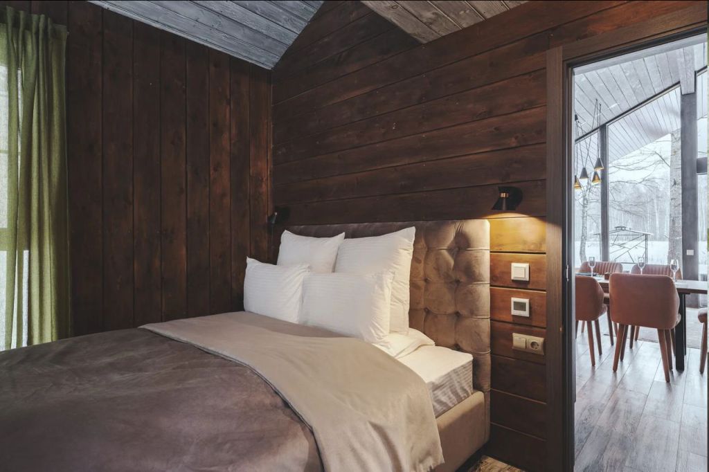 Это пространство для внутреннего восстановления сил вдали от шума города. Хвойный лес, природное озеро, черничные кусты, грибные места, живописные рассветы и закаты… Здесь большой выбор домиков на разное количество гостей. В каждом домике есть полноценная кухня, рядом – барбекю зона. Если нет желания готовить, можно заказть еду из ресторана парк-отеля Busel, или посетить их самостоятельно. Ближайшие супермаркеты находятся в 10 минутах езды. Территория обработана от клещей, в летнеее время лучше взять с собой спреи и фумигаторы от комаров. Сюда можно с питомцами