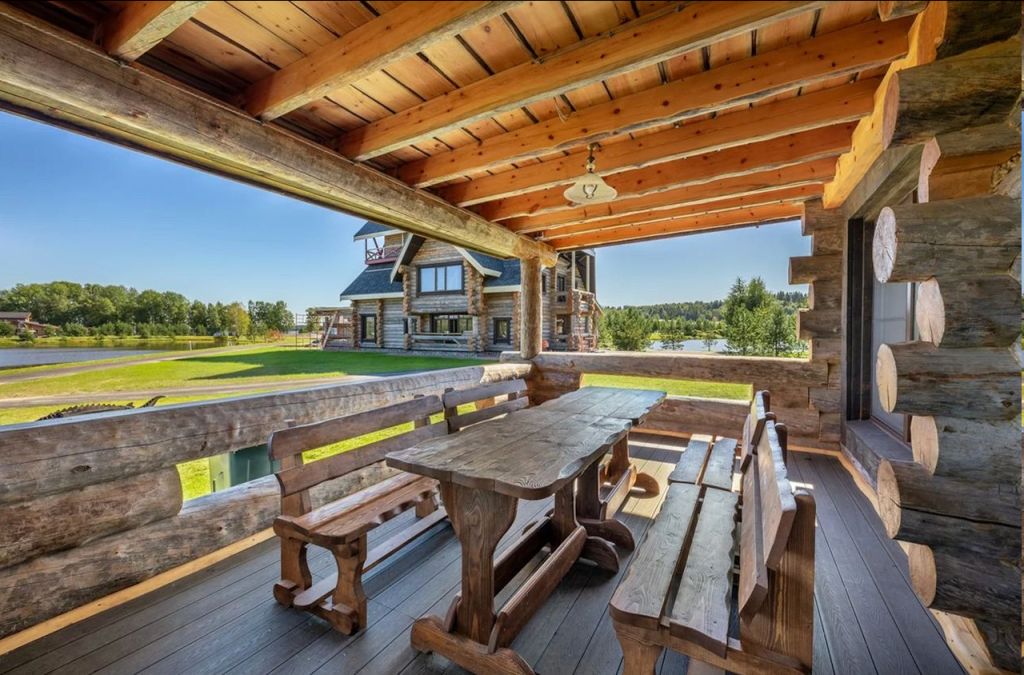 Большой спа-комплекс — русские бани в срубах прямо на берегу озера с панорамными окнами, массажи и обертывания.