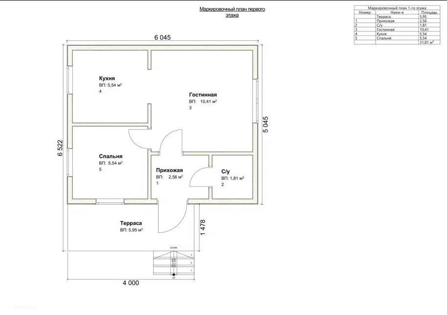 Общая площадь дома – 31.81 м²