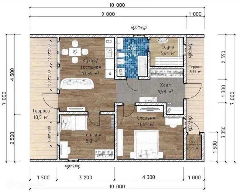 Общая площадь дома – 70 м²