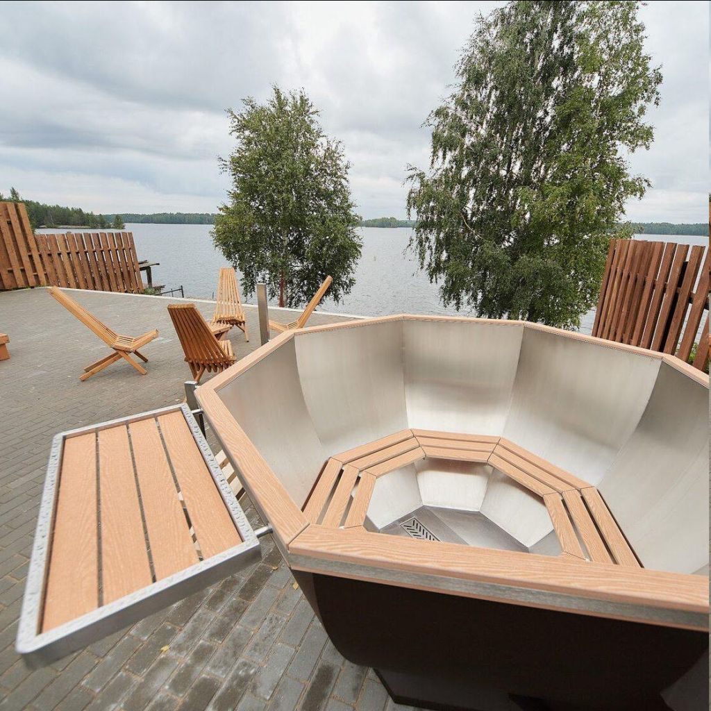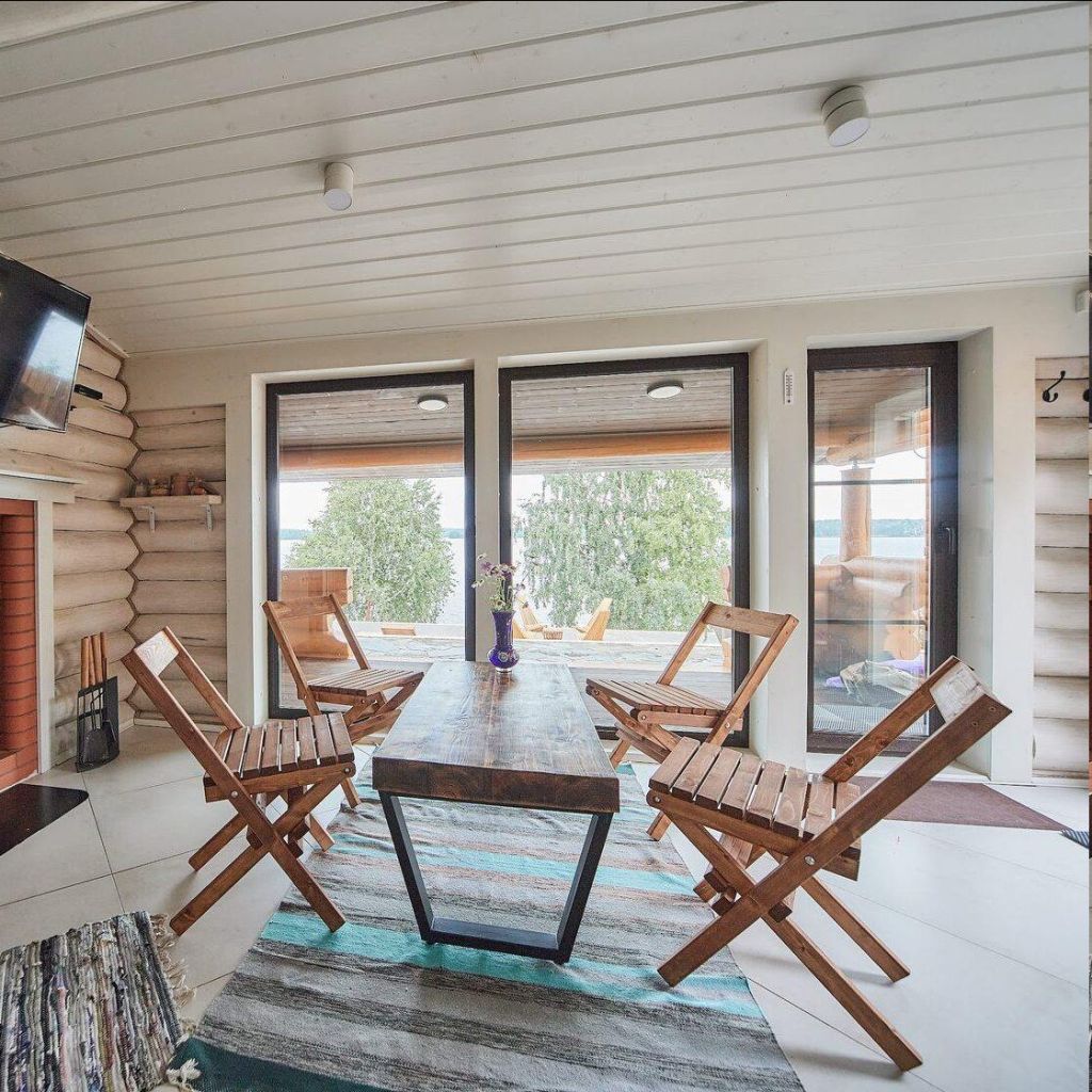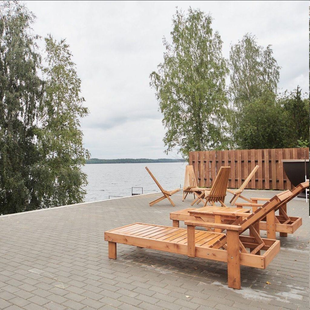 Уютные домики расположены на перешейке двух озёр всего в 30 минут езды от Петрозаводска. Кровать возле окна, панорамные виды на воду, любимая книга в руках — сюда приезжают, чтобы поймать дзен и северное сияние. На территории есть банный комплекс и чан под открытым небом. Рядом оборудована просторная терраса с шезлонгами, где гости могут принимать солнечные ванны. Всё пространство соткано из пеших маршрутов и локаций для фотосессий. Эстетичные лестницы, качели на цепочках, просторные террасы — без ярких снимков точно не уедете.