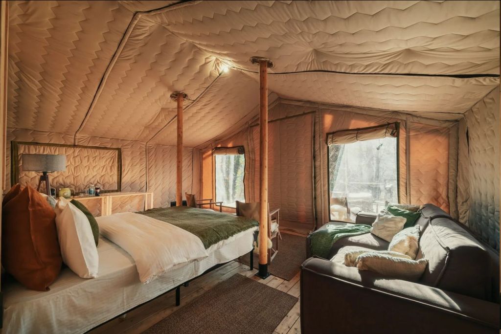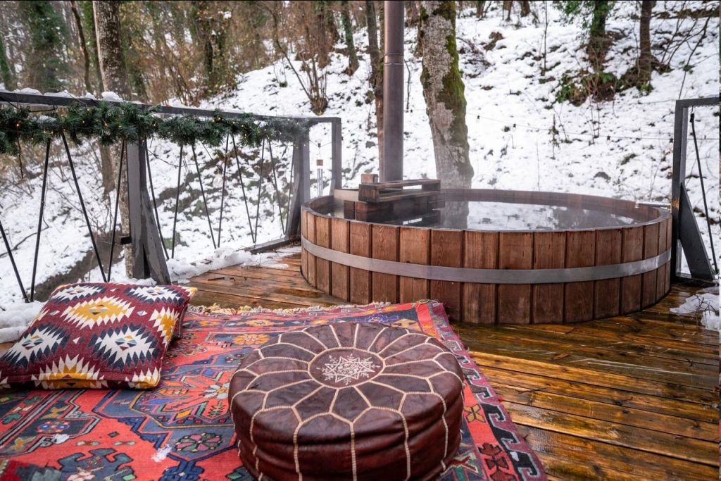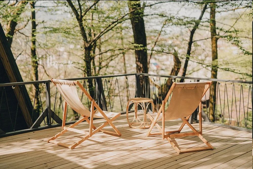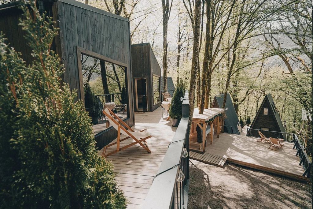Домики расположены на высоте 3 метров от земли. Рядом течет горная река и открывается шикарный вид на Красную Поляну На территории: 4 шале А-фрейм и 10 сафари шале. Площадь каждого шале 50 кв.м с размещением до 6 человек с панорамной террасой и персональной купелью. Находится в 4х минутах пешком до самого центра Красной поляны с ресторанами, кафе, барами и магазинами.