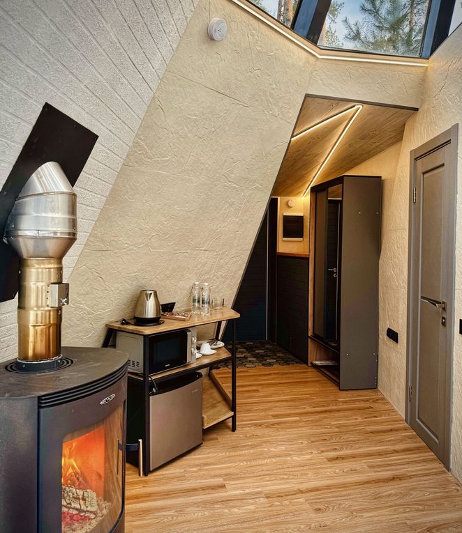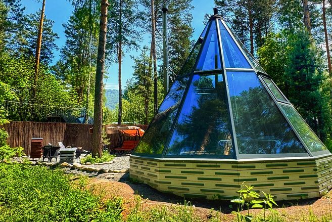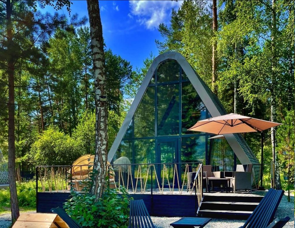 Единственный эксклюзивный дом за Уралом в форме геометрического конуса. Внутри стильная печь-камин и огромная модная ванна на 500 литров. Этот дом уникальной формы, в стиле геометрического конуса, с высокими 7-ми метровыми потолками, печью-камином и огромной ванной на 500 литров, приватной гриль зоной и террасой, что позволяет получить максимум удовольствия от отдыха.