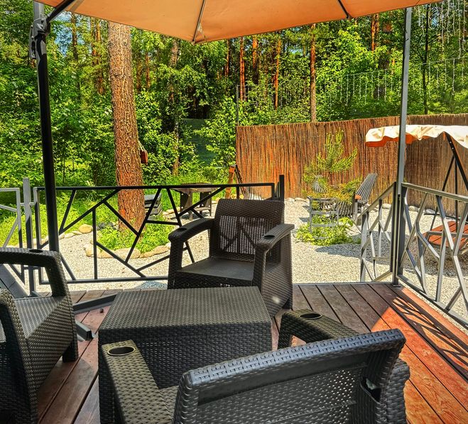 Из домиков открывается прекрасный вид на реликтовый лес, у каждого дома собственная мангальная зона.