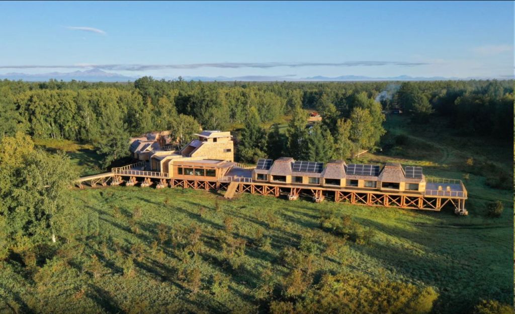 Он расположен в Мильковском районе Камчатского края на берегу реки Камчатка в 380 км от Петропавловска-Камчатского. Отель очень красивый и конечно же дорогой. В нем всего 16 номеров. Концепция “Авроры” отсылает к традициям коренных народов Камчатки, ительменов и коряков, а также к практике строительства мостов в Древней Руси” В меню ресторана русской северной кухни “Аврора” входят блюда из локальных камчатских продуктов. Это первый локаворский ресторан на Камчатке: здесь готовят свежепойманную рыбу, вручную засоленную икру, камчатские морские деликатесы и дичь. Практически все, подается на стол, выловлено, собрано, найдено в камчатских лесах, реках и, конечно же, в Тихом океане с соблюдением традиций коренных народов этой заповедной земли. Интерьер ресторана сочетает в себе брутальный шик, фактурные материалы, и утонченную эстетику. Наши гости всегда будут сыты — на территории ресторана постоянно накрыт стол с различными закусками и деликатесами. В ресторане пекут хлеб, варят сыр, выдерживают мясо. А летом и осенью повара делают заготовки, для хранения которых есть специально оборудованный погреб. Еда изысканная, но при этом довольно простая, что прекрасно подчёркивает общую атмосферу – эстетику, вкус и философию русского севера. Наша русская баня – одна из точек притяжения на территории отеля, его сердце и душа. Здесь можно укрепить здоровье и приобщиться к культуре парения, а также расслабиться после рыбалки или прогулки по лавовым полям.