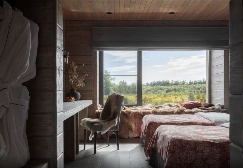Традиционный бревенчатый сруб из камчатской лиственницы покрыт сверху дерном и является продолжением природного окружения отеля. В бане – две русских печки, выполненных известным российским мастером-печником Романом Шибаевым.
