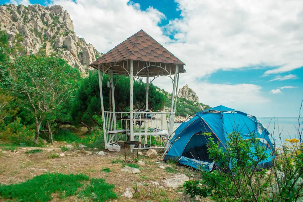 Кемпинг в Крыму с палатками на машине подойдет желающим проводить всё свободное время днем на берегу моря, купаясь и загорая. Это возможно благодаря тому, что кемпинг расположен на берегу моря. Вечером здесь можно развести костер, приготовить шашлык или посидеть в летней ночной тишине в смотровой беседке.