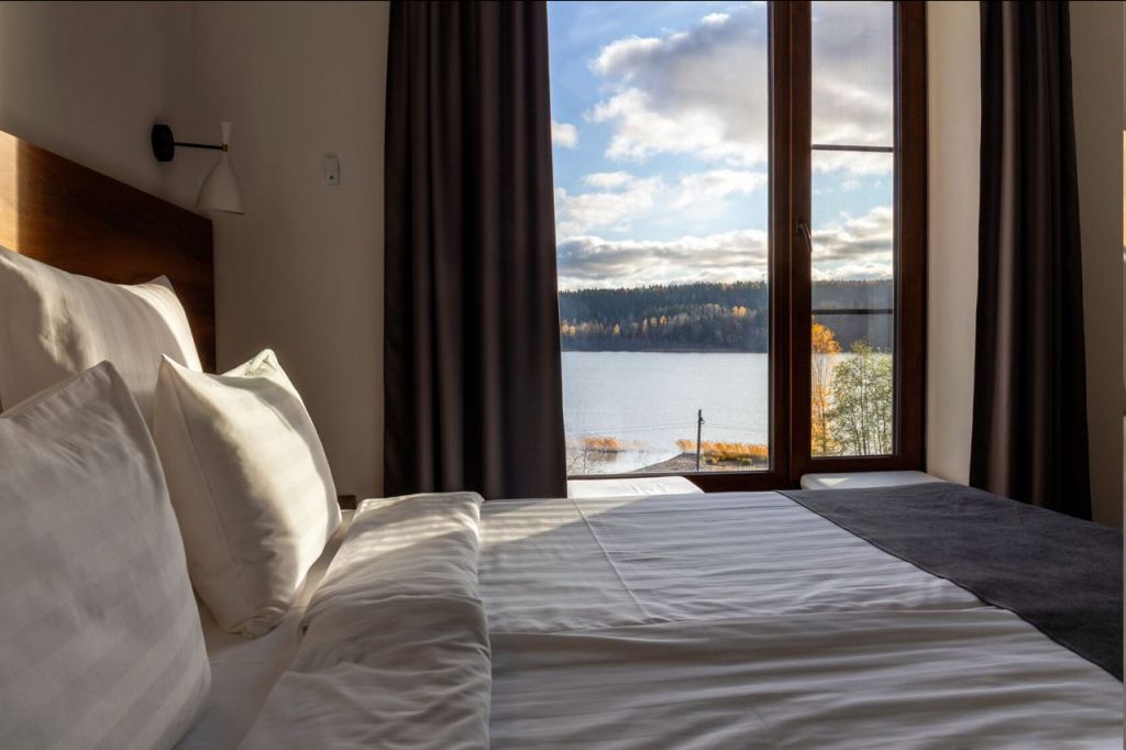 25 двухместных номеров с большими окнами и прекрасными видами на залив Ладожского озера или во двор и на Карельский лес