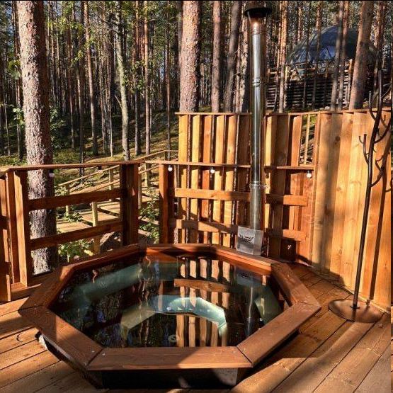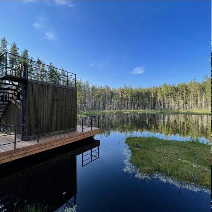 Глэмпинг расположен на берегу озера, в 100 км от Санкт-Петербурга. Гости размещаются в необычных зеркальных домах или сферах. Есть кафе, где готовят блюда из свежих локальных продуктов (еду хвалят). Также на территории есть баня, расположенная прямо на озере, а также доступна аренда лодок, сапбордов и велосипедов. Здесь можно устроить чаепитие с самоваром, атмосферно посидеть у костра и проводить на пирсе красочный закат – звучит идеально! Гости отмечают вкусную еду в кафе, чистые новые домики, красивую территорию.