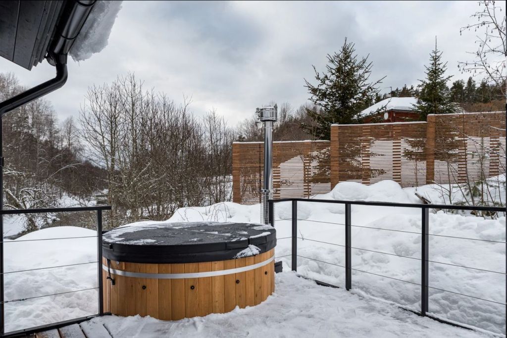 Дома в скандинавском стиле, расположены на берегу реки на комфортном отдалении друг от друга.