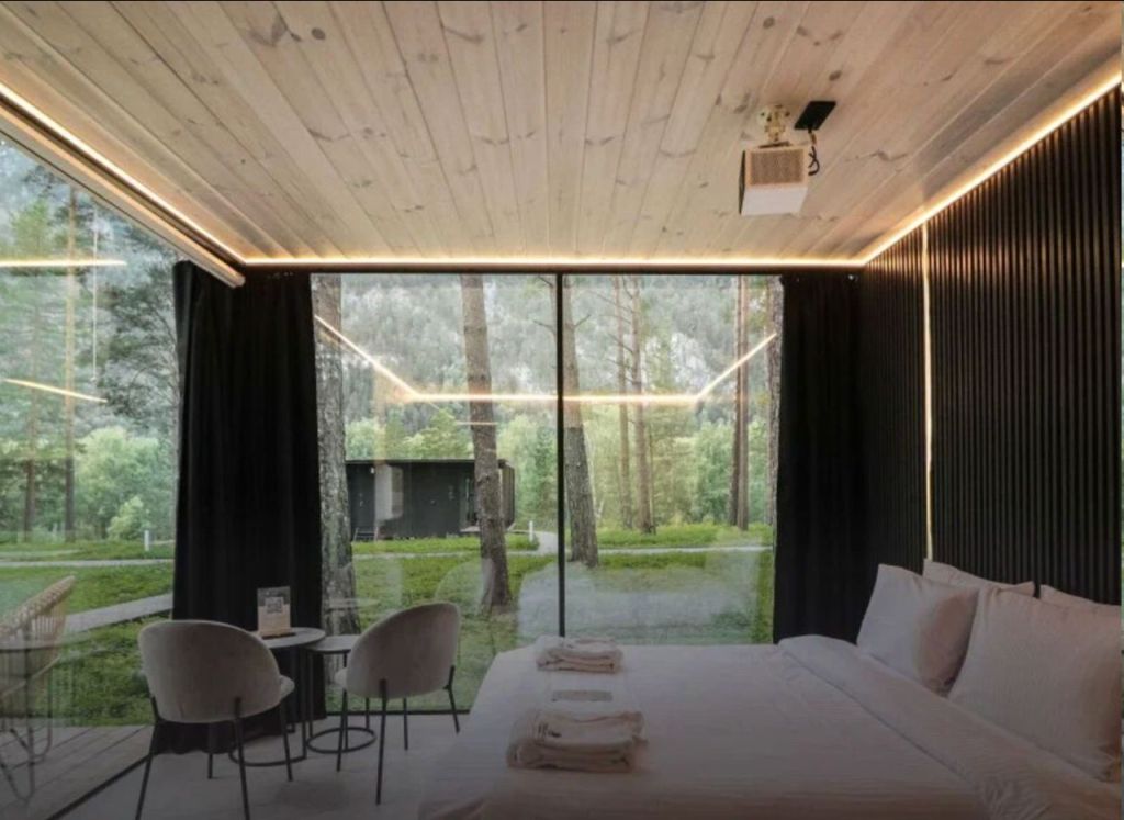 Круглогодичный отель с высокими стандартами сервиса в окружении реликтового леса и гор. Панорамные виллы и зеркальные дома для ценителей уединенного отдыха и премиального комфорта. Интерьер выполнен из натуральных материалов: дерева и камня с элементами эко-дизайна. В проживание входят завтраки в панорамном ресторане «БОР» с камином, детским уголком. Обедать и ужинать гости также предпочитают в ресторане по меню европейской и локальной кухни от шеф-повара. Если вы стремитесь почувствовать единение с природой — значит наши отели для вас. Приглашаем погрузиться в атмосферу релаксации, комфорта и гармонии, которую мы создаем в наших отелях более 5 лет. Комфортные условия для детей: ванночка (по запросу), кроватка и косметический набор в каждом номере. Доступен для аренды детский вигвам. В ресторане детский уголок с игрушками, ТВ-зоной и денди, детское меню. Детская площадка на территории отеля.
