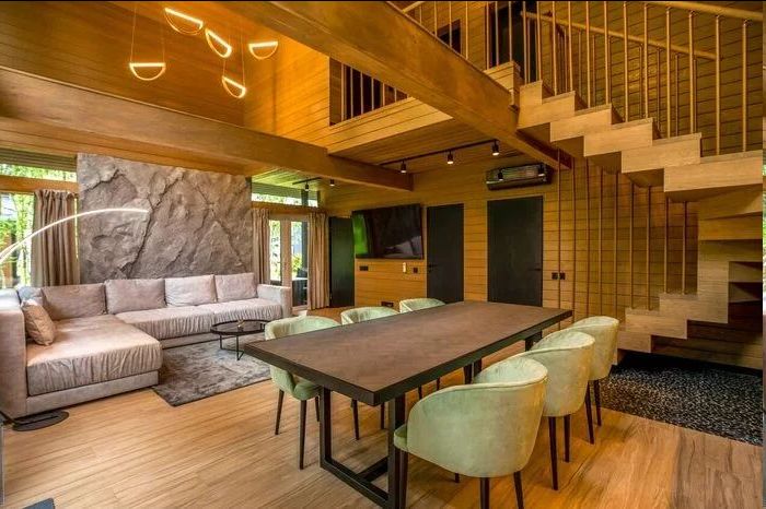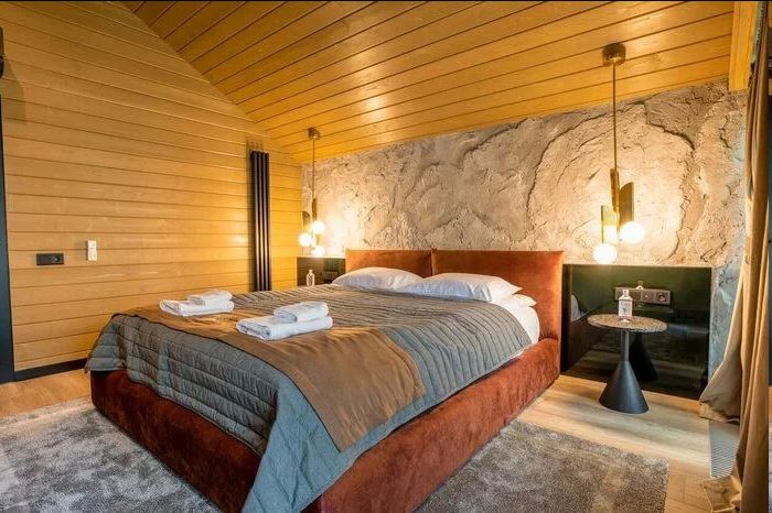Отель расположен в экологически чистом районе на первой линии Можайского водохранилища. Здесь размещены 12 коттеджей с верандами, пространства для отдыха, 2 русские бани с кедровыми купелями, рыболовный клуб и ресторан. Летом вода прогреватеся до +27 градусов, можно купаться, кататься на лодках и сапах, рыбачить. А зимой водохранилище превращается в место для активного отдыха: лыжи, снегоходы и зимняя рыбалка.