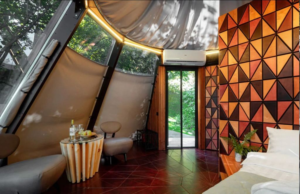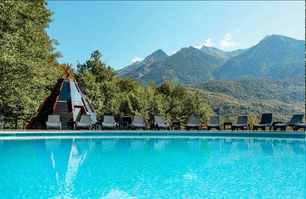 Размещение в Неотипи – это уникальные номера со стенами из закаленного стекла и обзором 360 градусов. Это значит, что любоваться великолепными горными пейзажами вы можете из любой точки номера – лежа на кровати и даже принимая душ. Номерной фонд отеля состоит из 25 номеров НеоТипи и в каждом из них эксклюзивный интерьер. Сделалан акцент на натуральных материалах, приятных фактурах и спокойных тонах. В ресторане с видом на на горный хребет Аибга авторское меню где переплетается европейская кухня и блюда с кавказским акцентом. При создании блюд шеф-повар использует местные фермерские продукты, в том числе горные травы Кавказа. На территории есть пляжный клуб (бассейн) – можно приехать сюда и отдохнуть без проживания (предварительная бронь обязательна). Есть панорамная сауна с видом на горы. Снаружи – открытая веранда с открытым бассейном и джакузи.