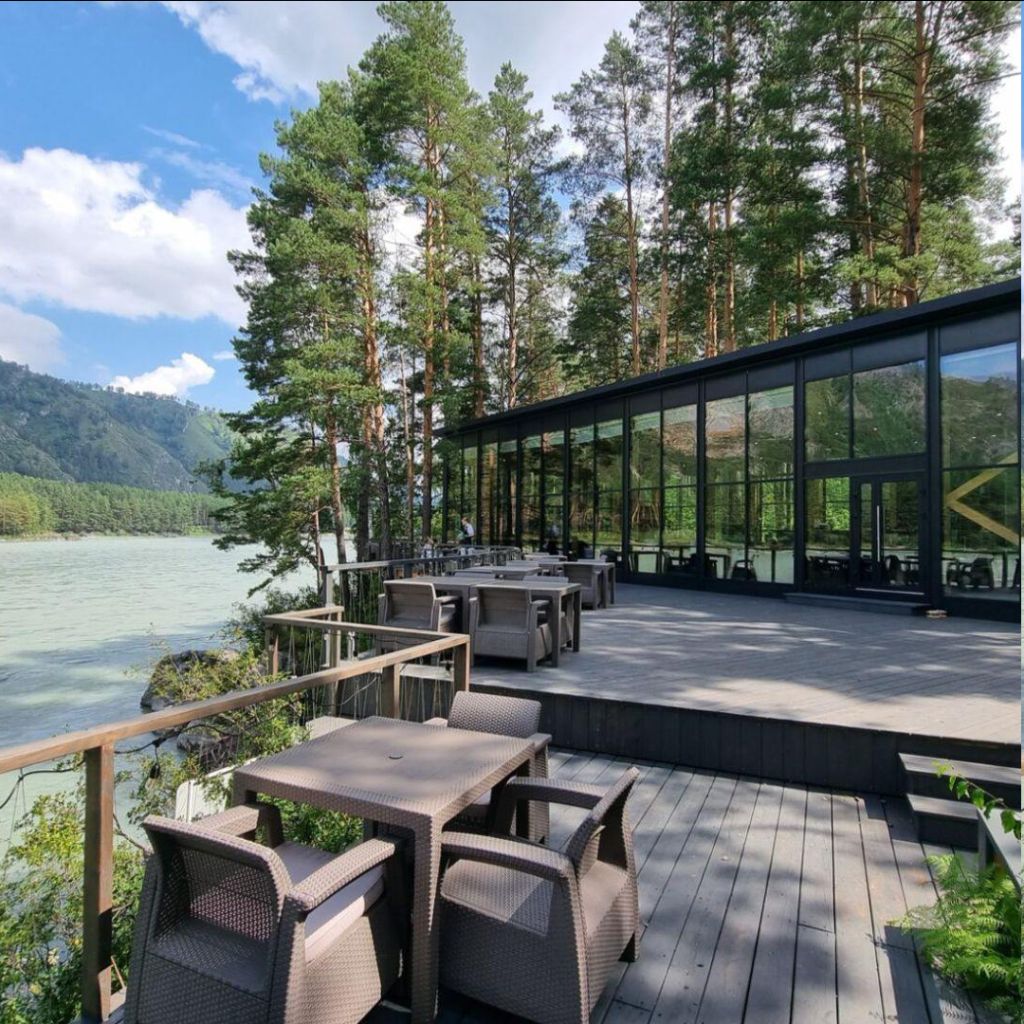 Размещение в барнхаусах – в каждом панорамное остекление, космический матрас, лаконичные формы и натуральные материалы Здесь есть SPA-банный комплекс с ледяной купелью и горячим чаном на берегу Катуни, гриль-зоны, прогулочные маршруты и экскурсии, настольные игры, проектор в каждом доме – вы точно не заскучаете! В панорамном ресторане шеф-повар очень вкусно и красиво готовит. Вы сможете попробовать локальную алтайскую кухню и местные деликатесы с изысканной подачей.