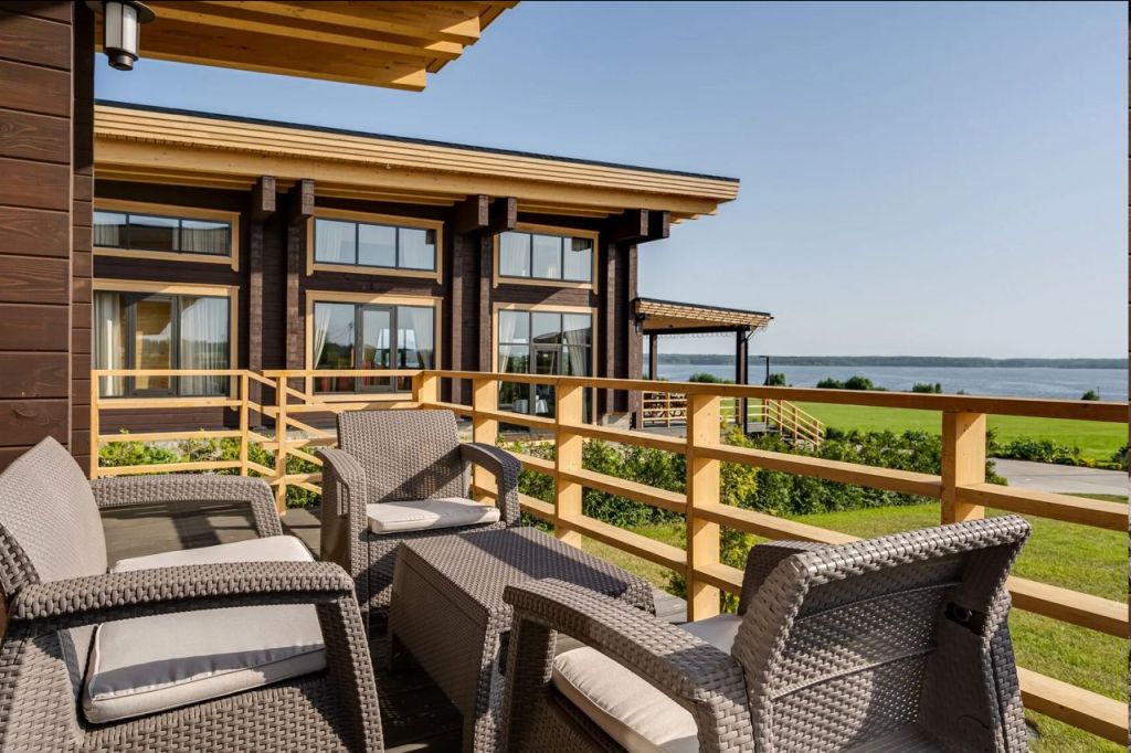 Загородный клуб с премиальным сервисом и потрясающим видом на Рузское водохранилище. Размещение в таунхаусах или коттеджах. Гости усадьбы могут познакомиться с милейшими камерунскими козочками, позагорать на деревянном пирсе, сходить на рыбалку, попариться в сауне, отправиться на вертолетную экскурсию или насладиться полетом на воздушном шаре.