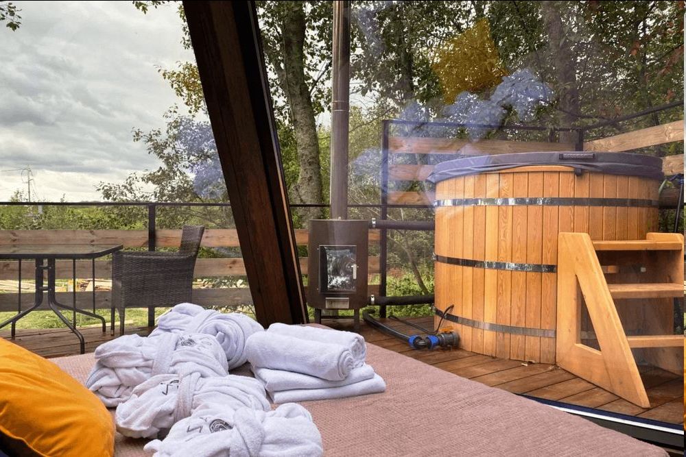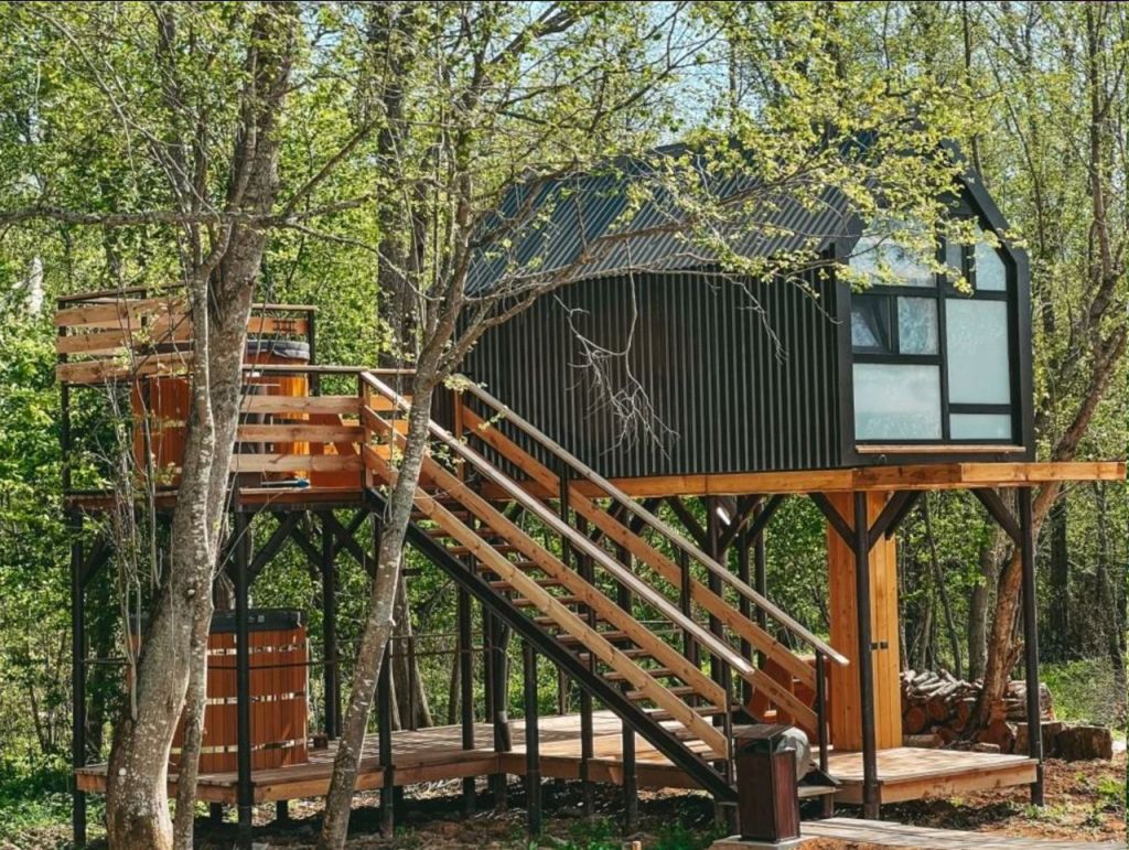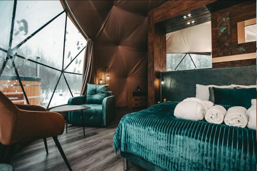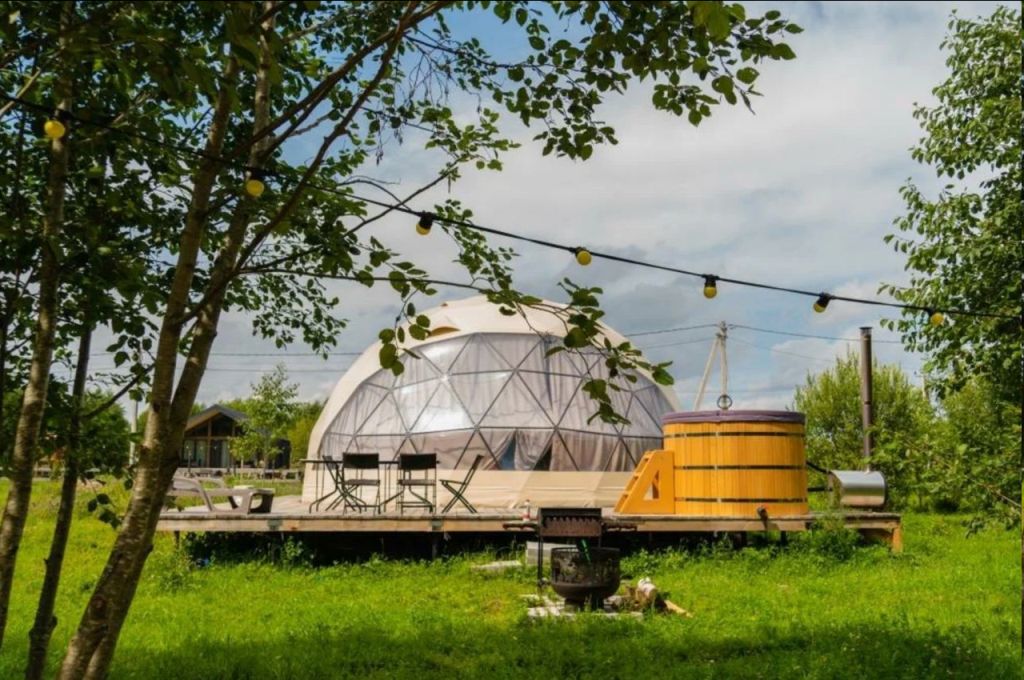 Можно снять один из геокуполов, типи, или домик на дереве.